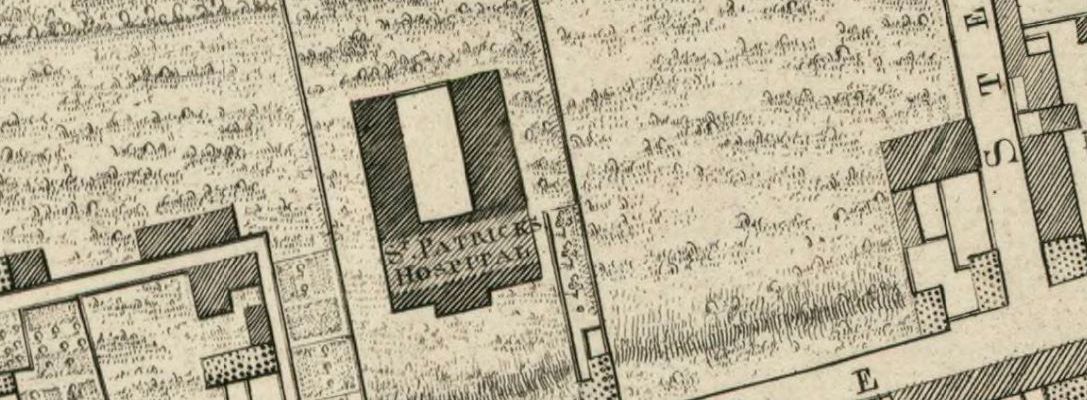 Going North from this point are two more historic hospitals. Lying behind its high walls off Bow Lane is St Patrick’s Mental hospital (SPMH) an early 18th century home for people with psychiatric issues, founded virtue of an endowment by the great Dean Jonathan Swift. It has done much superb and vital work in its over 250 year existence.